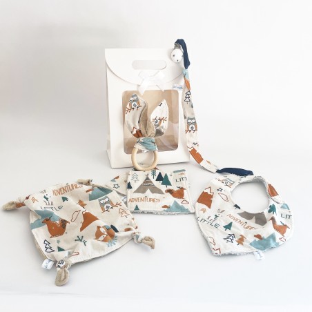 Coffret contient plusieurs cadeaux à offrir pour une naissance.
